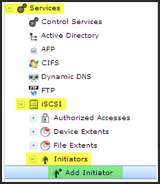 Navigate toServices/iSCSI/Initiatorsand click onAdd Initiator