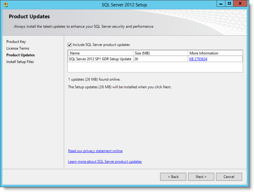 Include SQL Server product updates" checked and click on Next.