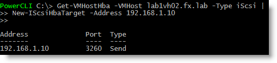 Get-VMHostHba -VMHost lab1vh02.fx.lab -Type iScsi |