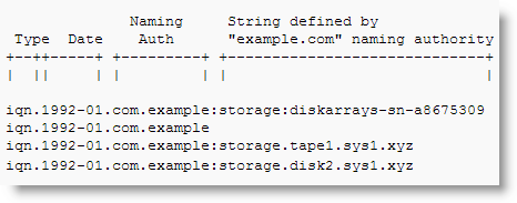 * The string "iqn.", used to distinguish these names from "eui." formatted names.