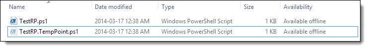 | testfile.ps1 and the automatic Restore point created by PowerShell Studio 2014: testfile.TempPoint.ps1 |