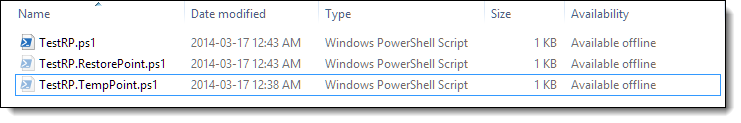 | I have one file saved: TestRP.ps1 and PowerShell Studio 2014 created an automatic Restore Point for meTestRP.TempPoint.ps1 for me |
